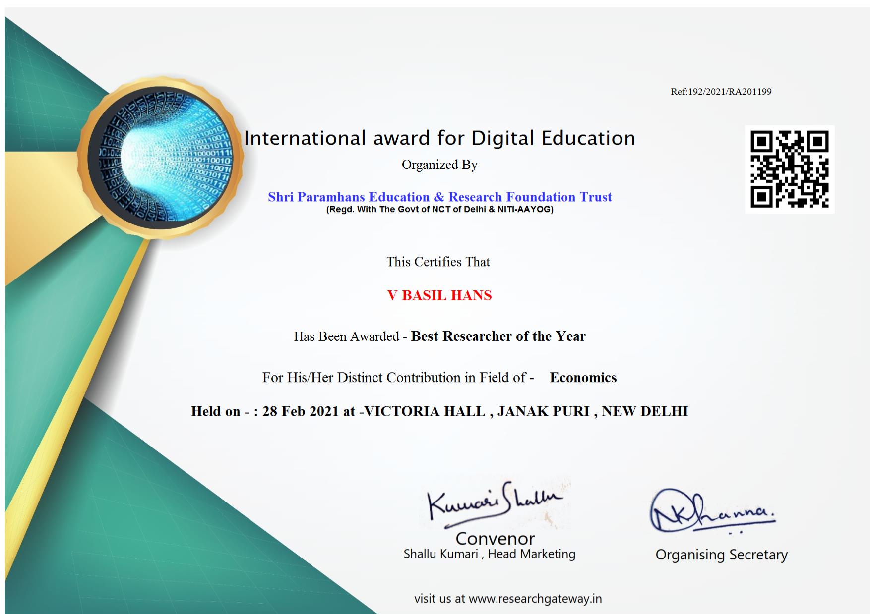 International award for Digital Education