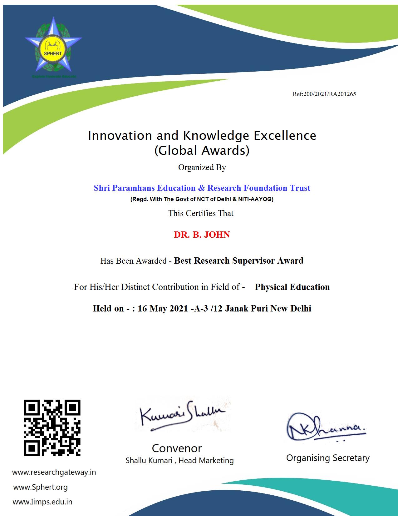 Nominated for: Best Research Supervisor Award  (Physical Education)