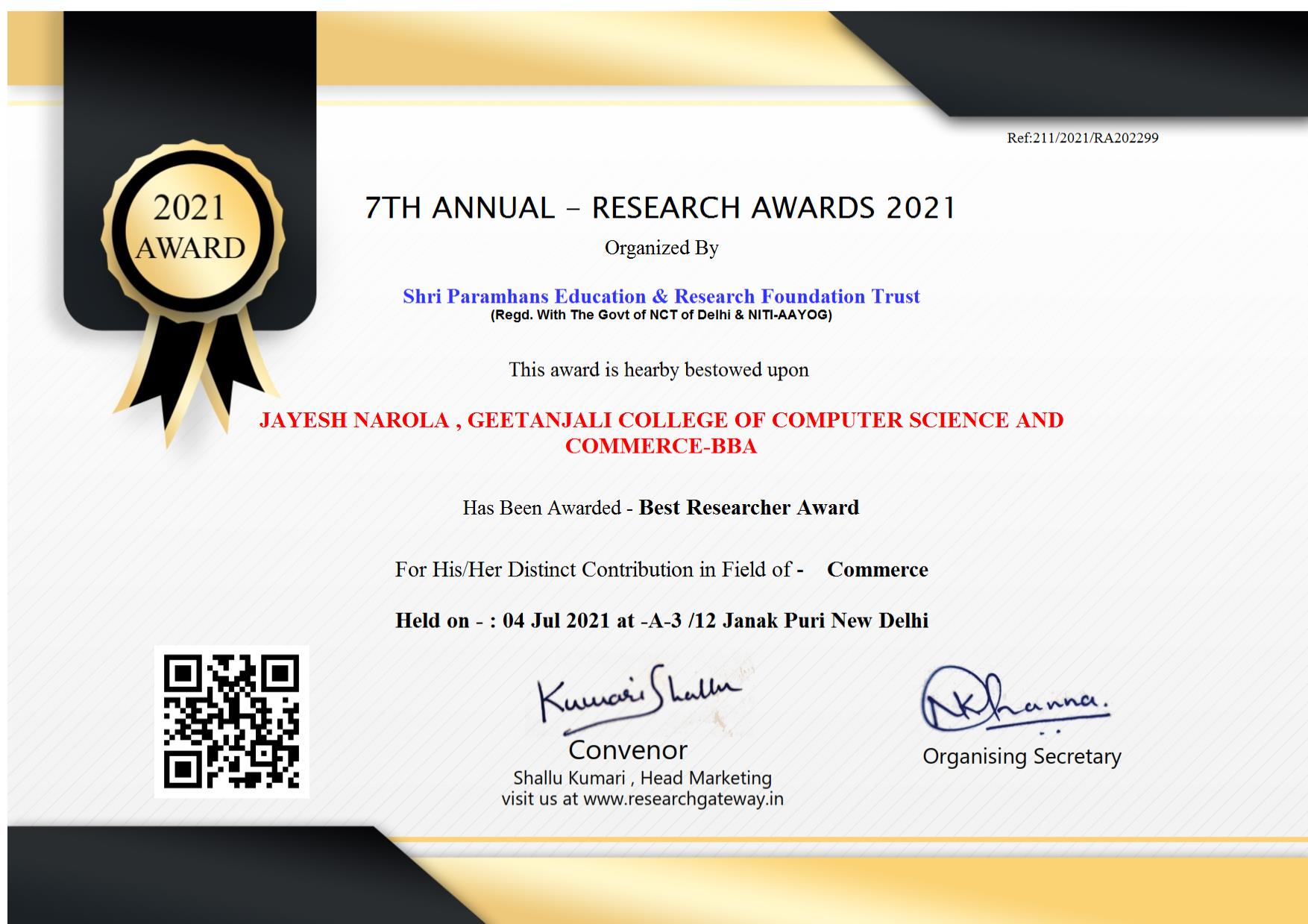 Participant Name : JAYESH NAROLA , GEETANJALI COLLEGE OF COMPUTER SCIENCE AND COMMERCE-BBA      Download Certificate