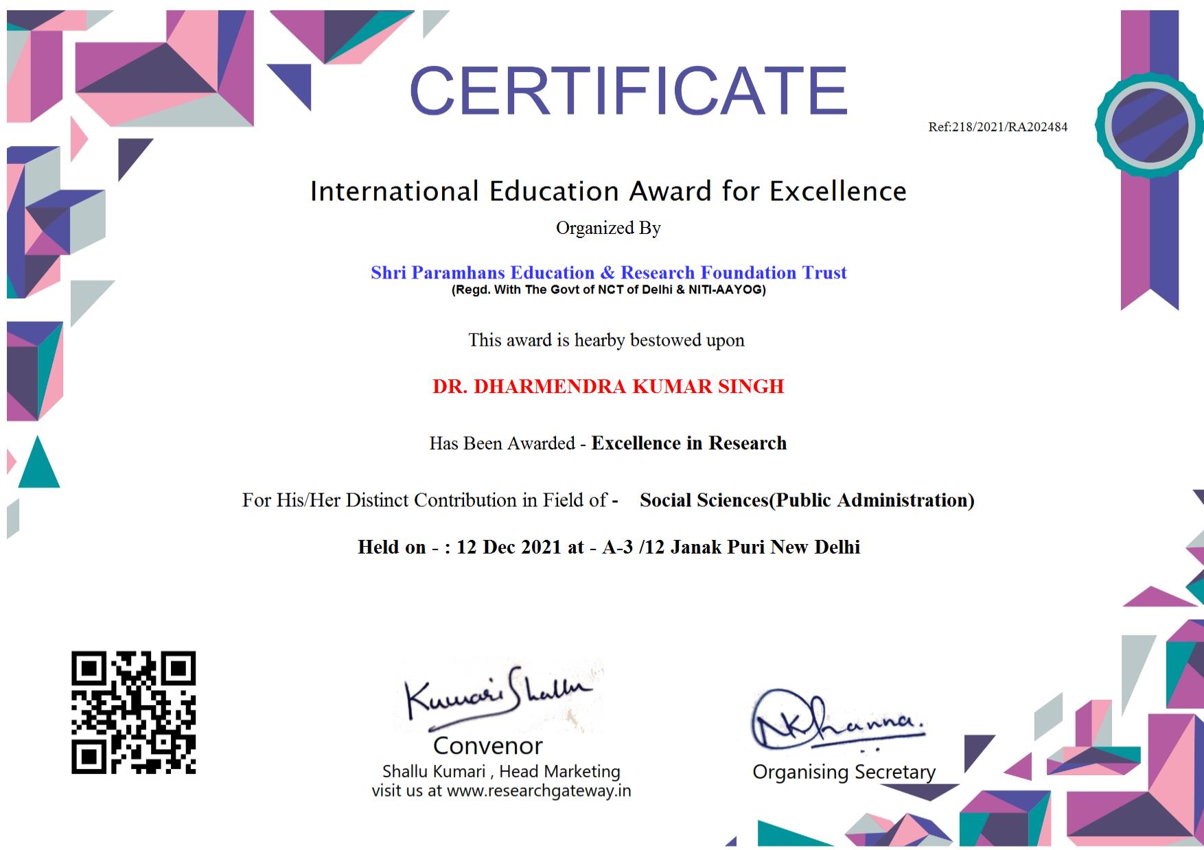 Nominated for: Excellence in Research (Social Sciences(Public Administration))
