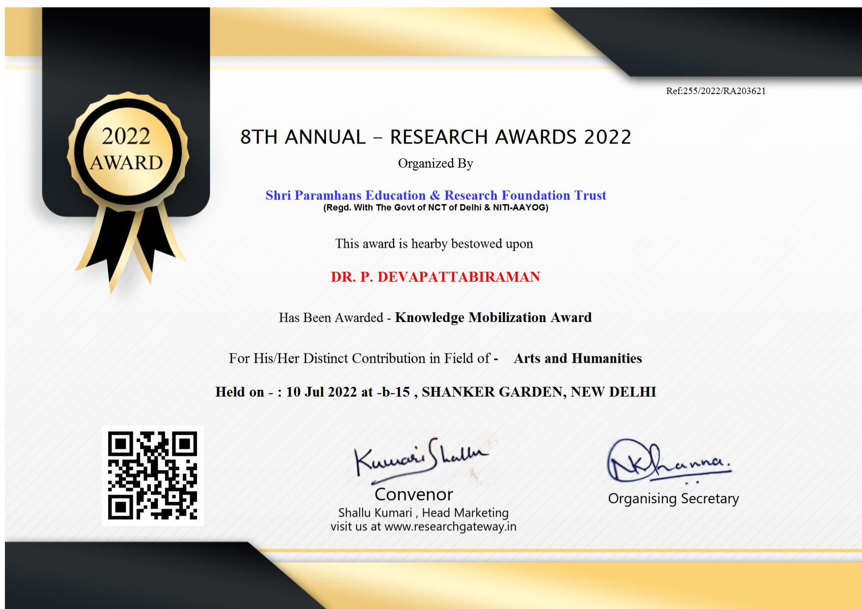 Nominated for: Best Researcher Award (Humanities)