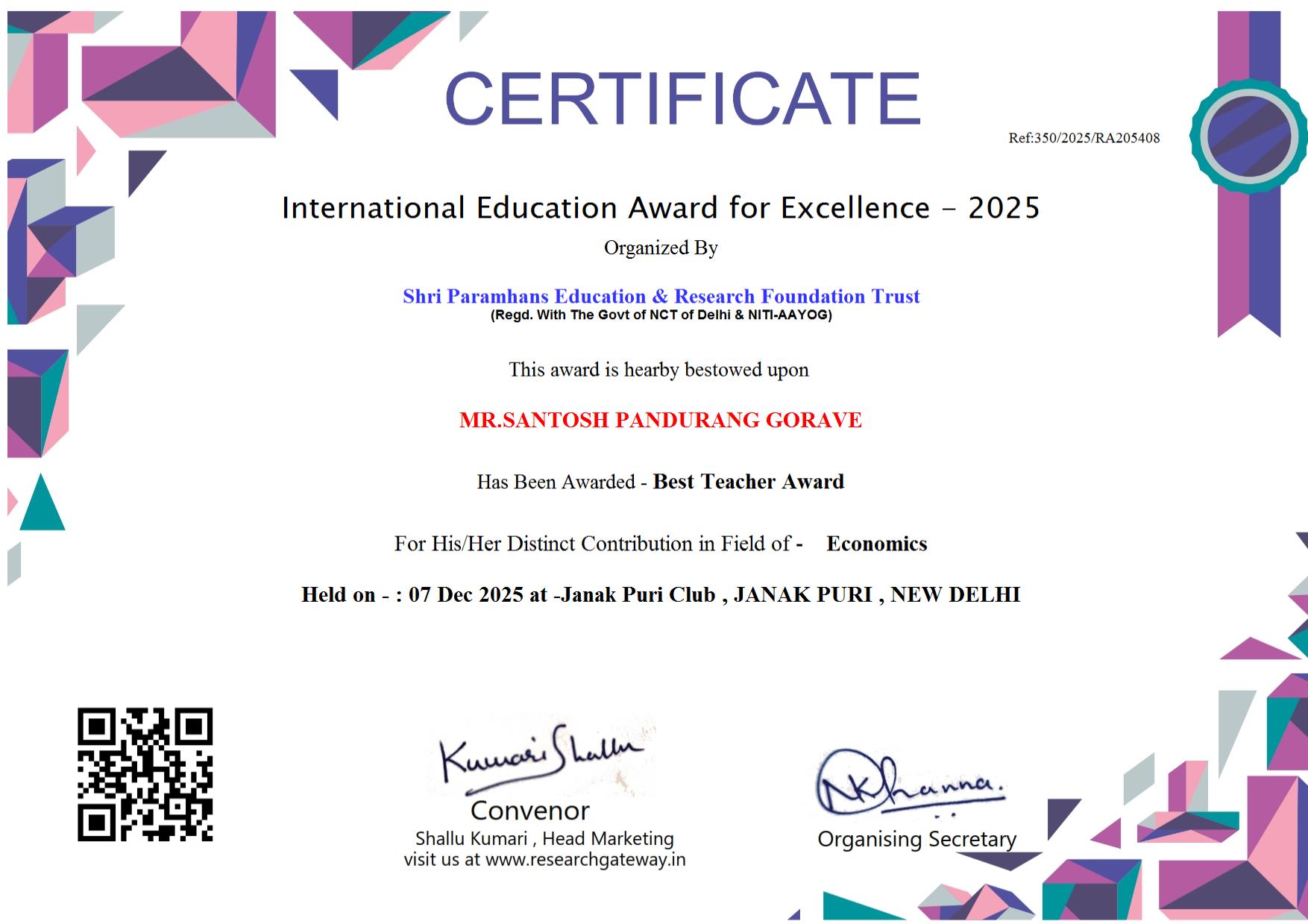 Nominated for: Best Researcher Award  (Education)