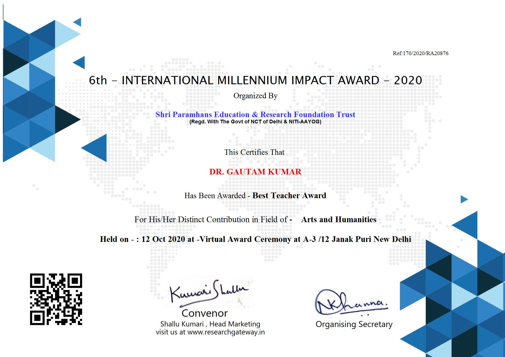 Nominated for: Best Researcher Award (History)